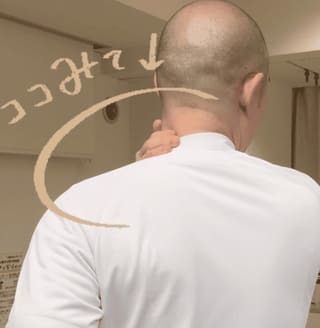 首を上下に振って痛い場合は首タイプで、後頭下筋群が原因です。この場合は後頭部の付け根をぐりぐりしましょう。