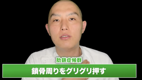 胸郭出口症候群の主な原因は、鎖骨まわりの筋肉や胸、肩の筋肉の硬結です。