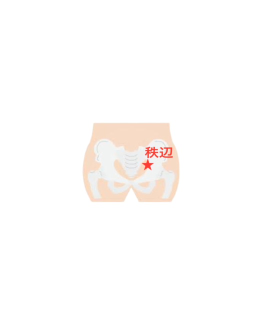秩辺は、背部正中線の仙骨と尾椎の間から左右へ外6cmの場所にあるツボです。