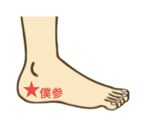僕参は、足外側にあるツボです。外くるぶしの斜め下で、アキレス腱の横にある窪みの部分にあります。