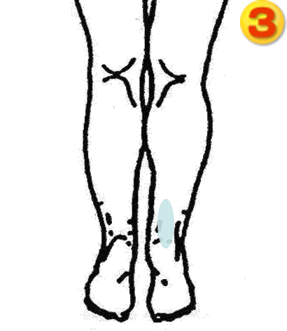 アキレス腱あたりから築賓まで擦るように押しましょう。築賓のツボのあたりは血が滞りやすいためマッサージするとむくみや疲れに効果的です。