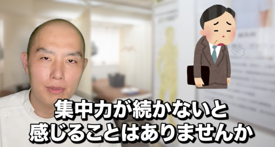 簡単な作業でも集中力が続かないと感じている場合は脳過敏症候群が関係している可能性があります。目や耳から入ってくる情報を過剰に受けてしまうため、物事に対しての耐久力がなくなってきて疲れやすくなります。