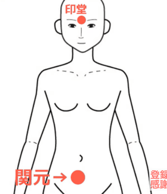 壇中は心の蓋です。胸が詰まっているほど硬くなってしまいます。軽く押しながら呼吸することで蓋が開いて不安も抜けていきます。人差し指と中指でゆすりながら刺激してあげてください。押すと痛いところがあり強くやると本当に痛いです。痛いところを軽く刺激を与える程度で良いです。