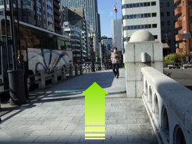 ドン・キホーテを通り過ぎると、青い歩道橋がありますので、反対がわの道路に渡りましょう。