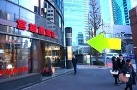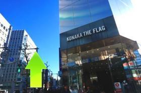 山手線の新橋駅におりたら、銀座口に出ましょう。目の前にKONAKA THE FLAGがあります。