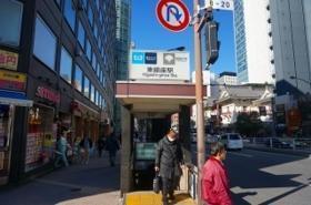 大江戸線築地市場駅をおりて、A3出口に向かいましょう。出口をでると、国税局があります。右に進んでください。