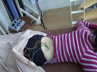 トリガーポイントへ鍼を刺入し、電気をかけ筋肉を動かして血流を改善させます。