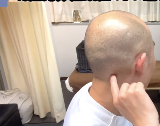 風池は頭蓋骨のキワにあるツボです。頭のキワあたりにあります。懲りやすいところのためぐりぐり押してあげましょう。