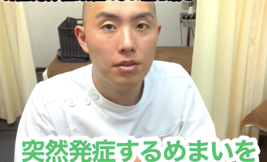 体全体の問題から生じます。原因は自律神経、貧血、発熱だと考えられています。院長は全身性めまいの施術が非常に得意です。