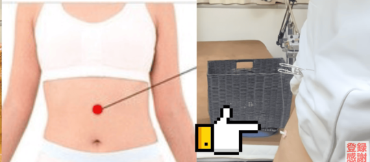 へそからゆっくりなぞっていくと膨らみがあります。この天井の1番高い場所にお灸を行いましょう。