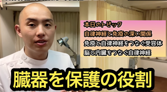 長崎大学の井上先生の研究によると、自律神経は免疫システムを通じて炎症を抑制し、臓器を保護する役割があるとされています。
