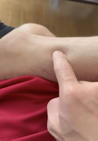 三陰交は足にあるツボです。ふくらはぎの内側の骨の際にあり、内くるぶしから上に3寸上がった場所にあります。足関節、足の関節の内くるぶしの頂点から上3センチ上がったところにポイントがあります。