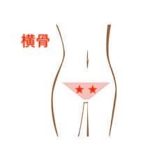 横骨は、恥骨のすぐ上にあるツボです。恥骨の中心から左右に指幅0.5本分いったところにあります。