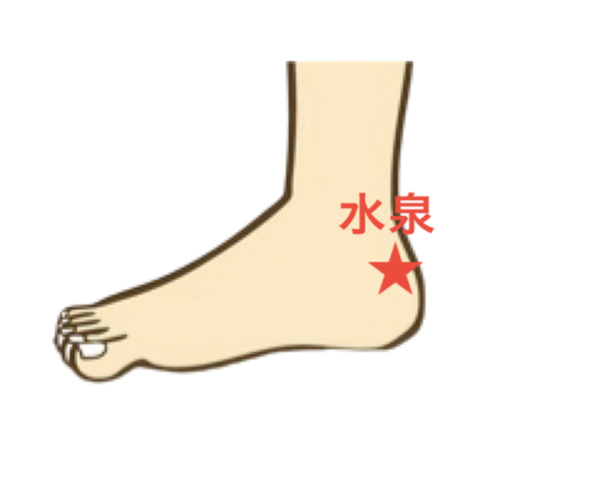 水泉は、内くるぶしとかかとを結んだラインの真ん中にあるツボです。
