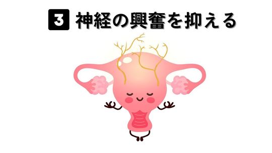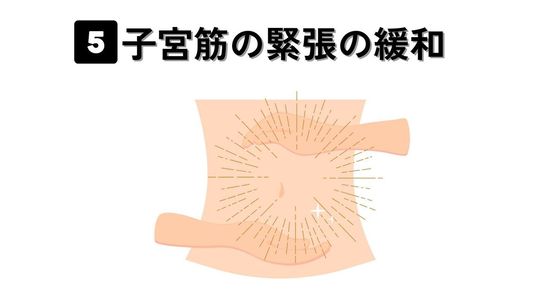 子宮周囲や骨盤底筋群の筋緊張を和らげ、リラクゼーションを促進する効果があります。生理痛に伴う痛みや痙攣は、筋肉の緊張が原因の一部であるため、筋肉の弛緩を促すことで、痛みを軽減することが可能です。