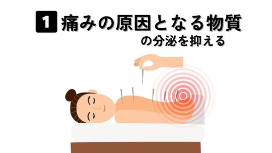 鍼刺激は、体内で内因性オピオイド(エンドルフィンやエンケファリンなど)と言われる鎮痛物質の生成を促進することが、研究で明らかになっています。これらの物質は、普段から体内で自然に作られていますが、鍼灸によって分泌が促進され、自然な形で痛みを和らげることが可能です。