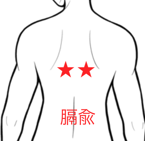 膈兪は、肩甲骨の下の背骨から外に5cm離れた場所にあります。