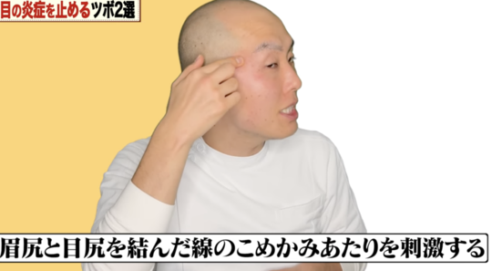 太陽は眼精疲労に効果的なツボです。特に眼精疲労で頭痛が起こっている時などにお勧めです。