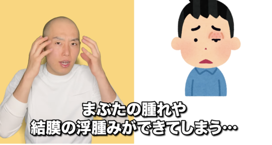 このタイプの結膜炎は目を絶対にかいてはいけません。かいてしまうとその部分が刺激され、血流が良くなりヒスタミンがどんどん出てかゆくなって赤くなります。どんどん悪化して瞼の腫れや結膜の浮腫ができてしまうのです。