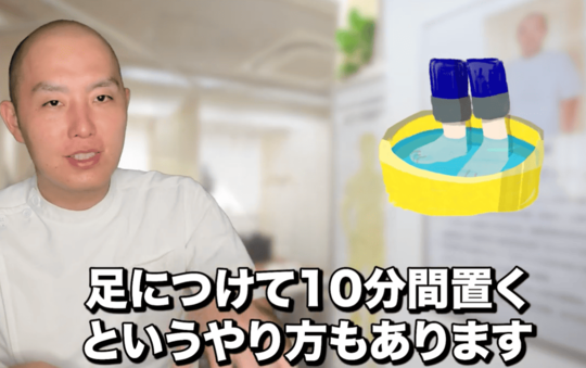 冷やし方は、袋に氷水を作って思いっきり冷やす方法です。お風呂でバケツに氷と水を入れて足を10分間つける方法もあります。熱を持っていると絶対に回復しないため思いっきり冷やして欲しいと思います。
