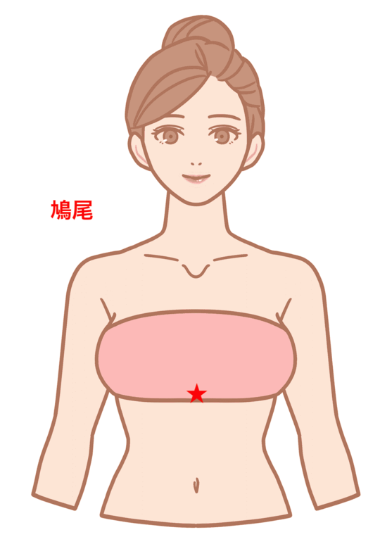鳩尾は、ちょうどみぞおちの部分から少し上方で、胸骨の少し下方にあります。
