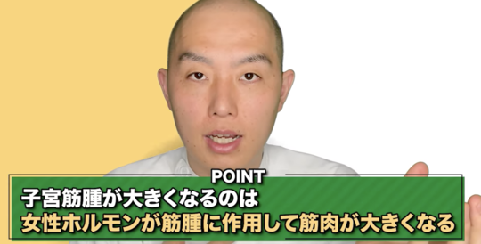 1. 筋腫の発育には成長にエストロゲン、プロゲステロン(黄体ホルモン)などと女性ホルモンが関係しています。