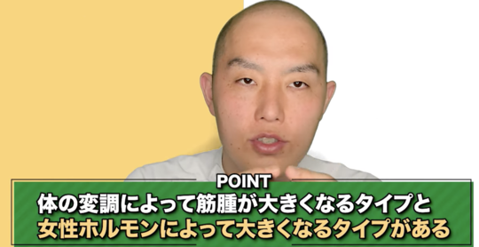 最近、当院では体の変調によって筋腫が大きくなるタイプと女性ホルモンによって筋腫が大きくなるタイプがあることがわかりました。