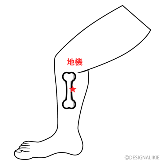 地機は外くるぶしの上約12cmのところで、腓骨の外側面にあります。筋肉の間の溝になっているところです。
