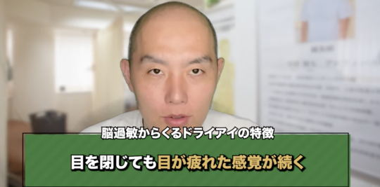 脳過敏によるドライアイの特徴は、目を閉じても目が疲れた感覚が続くことです。その場合晴明と魚腰は逆効果になるため注意しましょう。脳過敏の場合は症状がある場所を刺激するとどんどん悪化してしまいます。