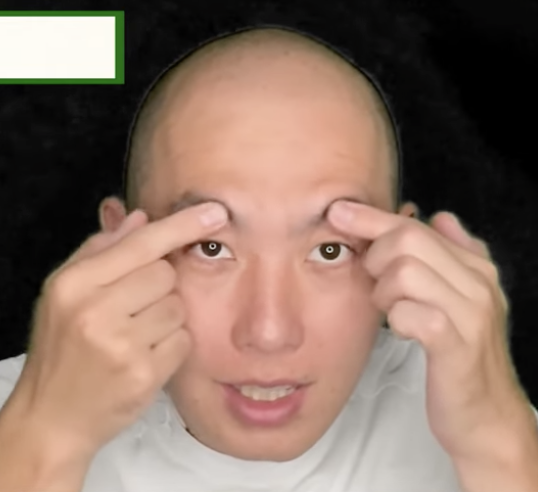 人差し指で眉毛の真ん中をぐりぐり押します。縦、横に押すのも滑らせるように押すのも良いです。触ると凹むためそこに刺激を与えられればより効果的です。