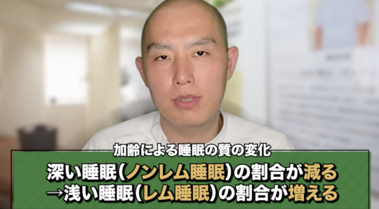 年を取ると、自然に睡眠の質が低下し、夜間に目覚めることが増えることがあります。また、昼間の活動量が減るため、夜に疲れにくくなることも影響します。