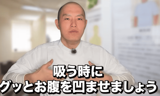 ③この状態でお腹の方に膨らませて30秒維持する。