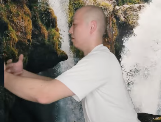 腰が曲がりがちですが、きちんと伸ばして維持しましょう。この体勢は太極拳、機構でよく使われる体勢です。立禅といい丹田にエネルギーを貯める動作になります。