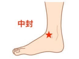 中封は、ギックリ腰に非常に効果的なツボです。他にも腹部の冷えや足の冷え、尿の出の異常に効果を発揮します。