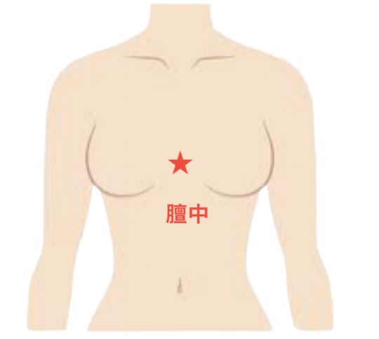 膻中の場所は、胸の中央の骨の上です。