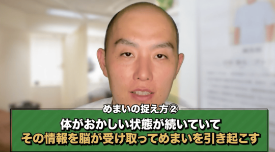 脳が興奮して脳がめまいを作り出していることは分かっていましたが、作り出す理由がトラウマやマイナス思考ではなく、体がおかしい状態が続いていてその情報を脳が受け取ってめまいを引き起こしていると捉えるようになりました。そして、その体の問題がとる施術を行ったらめまいの症状が楽になったのです。