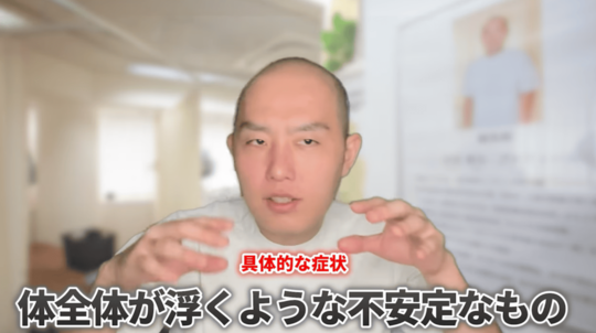 立った姿勢など体勢により悪化します。目眩、浮遊感、不安定感もちろん内科的病気や心理的ストレスによる平衡障害が起きて発症すると言われています。
