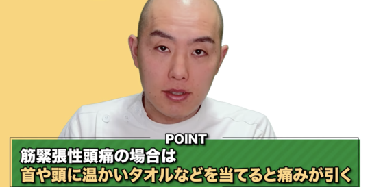 そのため、基本的には温めることで改善します。暖かいタオルを首や頭に当てると血流が良くなり痛みがなくなります。