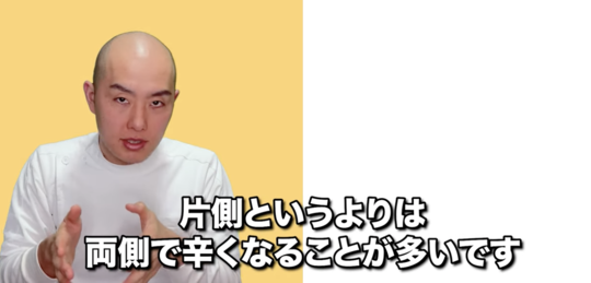 緊張性頭痛と片頭痛を同時に起こしているときは、体の土台が悪い人が多いです。体が一方向にずれてしまってそれに対して体が緊張するのです。神経が圧迫したり体が反応してしまうと、片頭痛のような痛みと緊張性頭痛のような痛みを両方発生させます。