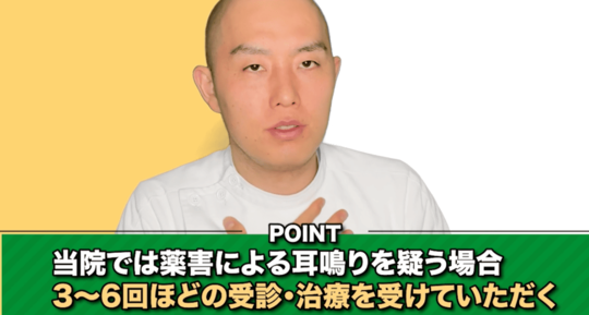一般的に薬害性難聴を改善するためには、薬剤の使用を中止することが必要です。