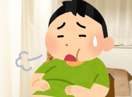 食べすぎると内臓疲労が起こります。当院でも食べすぎている人が多く、そのような人は仰向けになると胃が膨らんでいます。これは食べすぎたことで胃が拡張し、拡張が溶けずにずっと胃が膨らんでいる状態です。腹八分目、香辛料は少なめをオススメします。またジャンクフードは控えましょう。