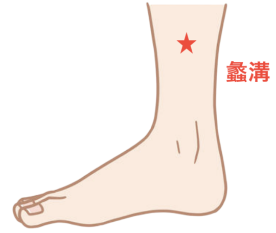 蠡溝は、脛の骨の中央にあるツボで、内くるぶしから5寸上に上がったところにあります。