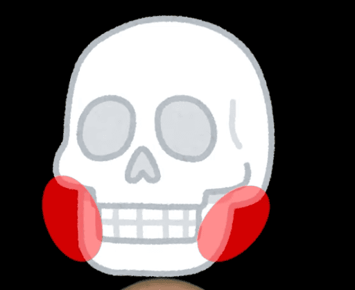 ②頬骨の少し下のあたりと顎の角のコリコリしたところ2点を押す