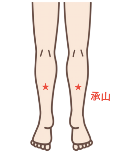 承山は、足の痛みや腫れに効果的なツボです。特にふくらはぎに肉離れが起きた時に効果を発揮するツボで、足の筋肉痛や足のつり、こむらがえりにも有効です。