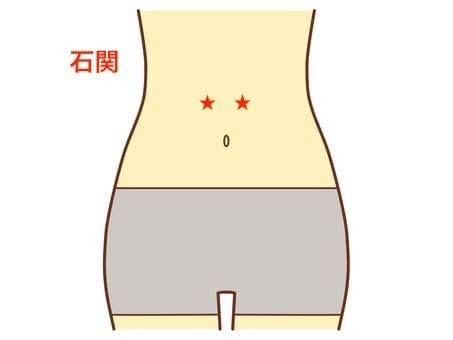 石関は、臍の両側に1.5cm進んだ場所から約9cm上に上がったところにあるツボです。