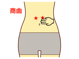 商曲は、臍の両側から横に1.5cm進み、そこから上に約6cm上がったところにあります。