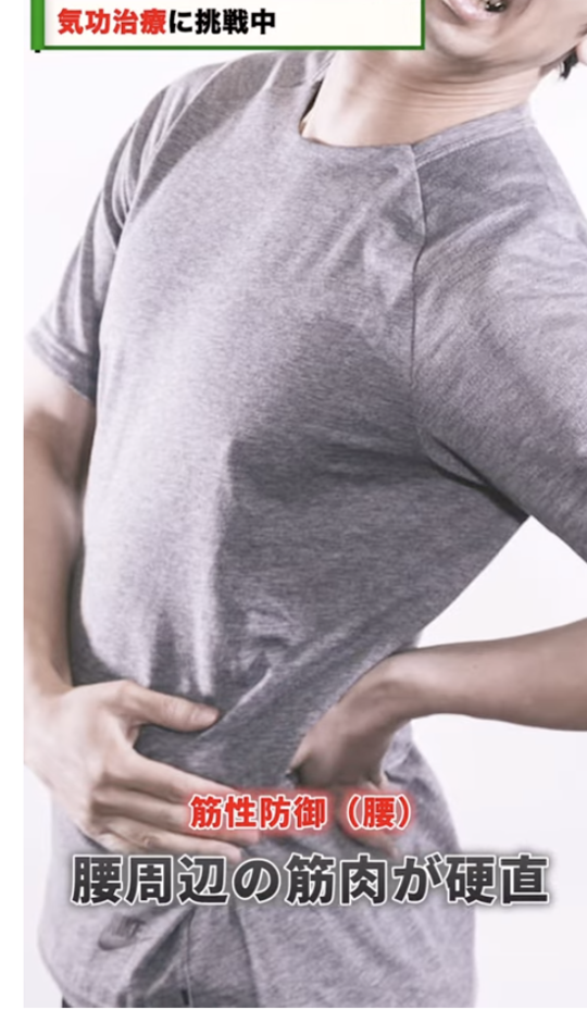 筋性防御は、体が自らを守るために硬直する生理反応です。脳は悪いところを意識できないほどの緊張で訴えているのです。