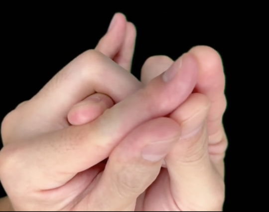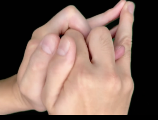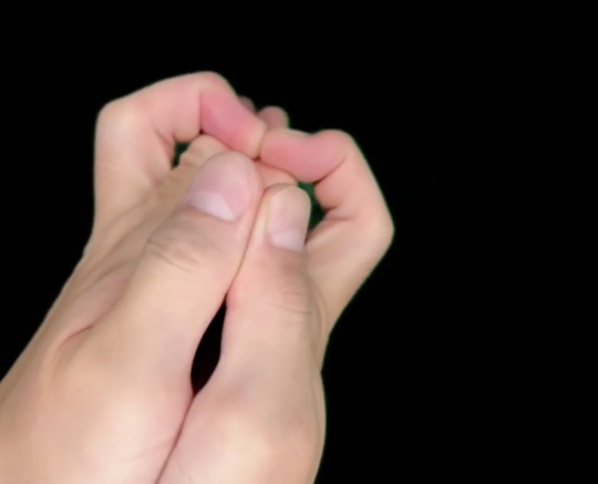 闘・・・人差し指と中指をからめて中指と小指の先端、親指をくっつける。