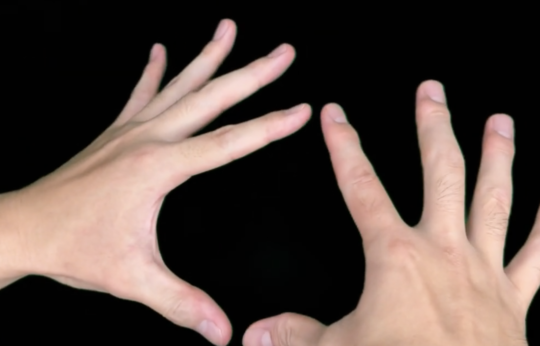 者・・・人差し指になや指をはめて人差し指と親指、小指をくっつける。