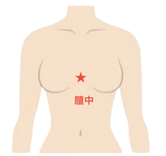 膻中は、乳首と乳首の間の硬い骨がある場所にあります。